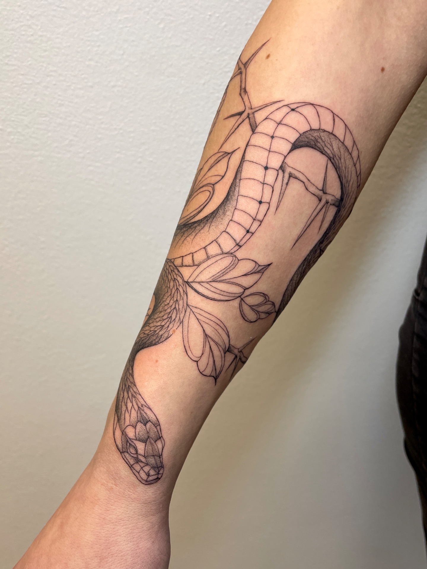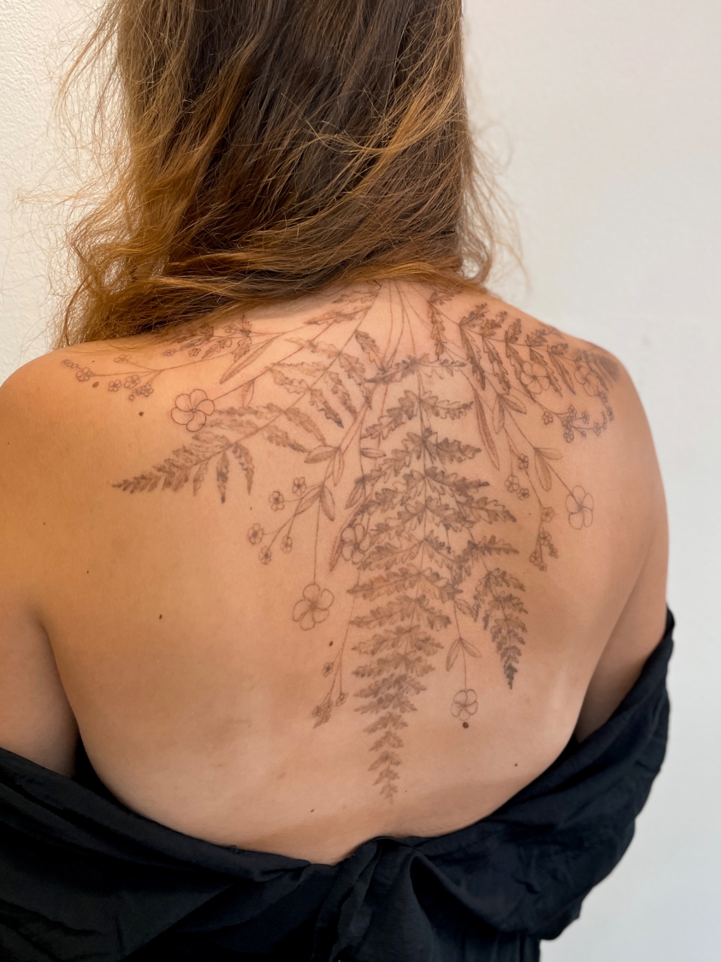 Záleží mi na tom, aby se můj styl sešel s vaší představou a abychom obě strany byly co nejvíce spokojené s výsledkem. Návrhy připravuji obvykle dopředu, ale u některých rostlinných motivů se přikláním k free-hand technice, až ve studiu, kde můžu pracovat s tvary vašeho těla.